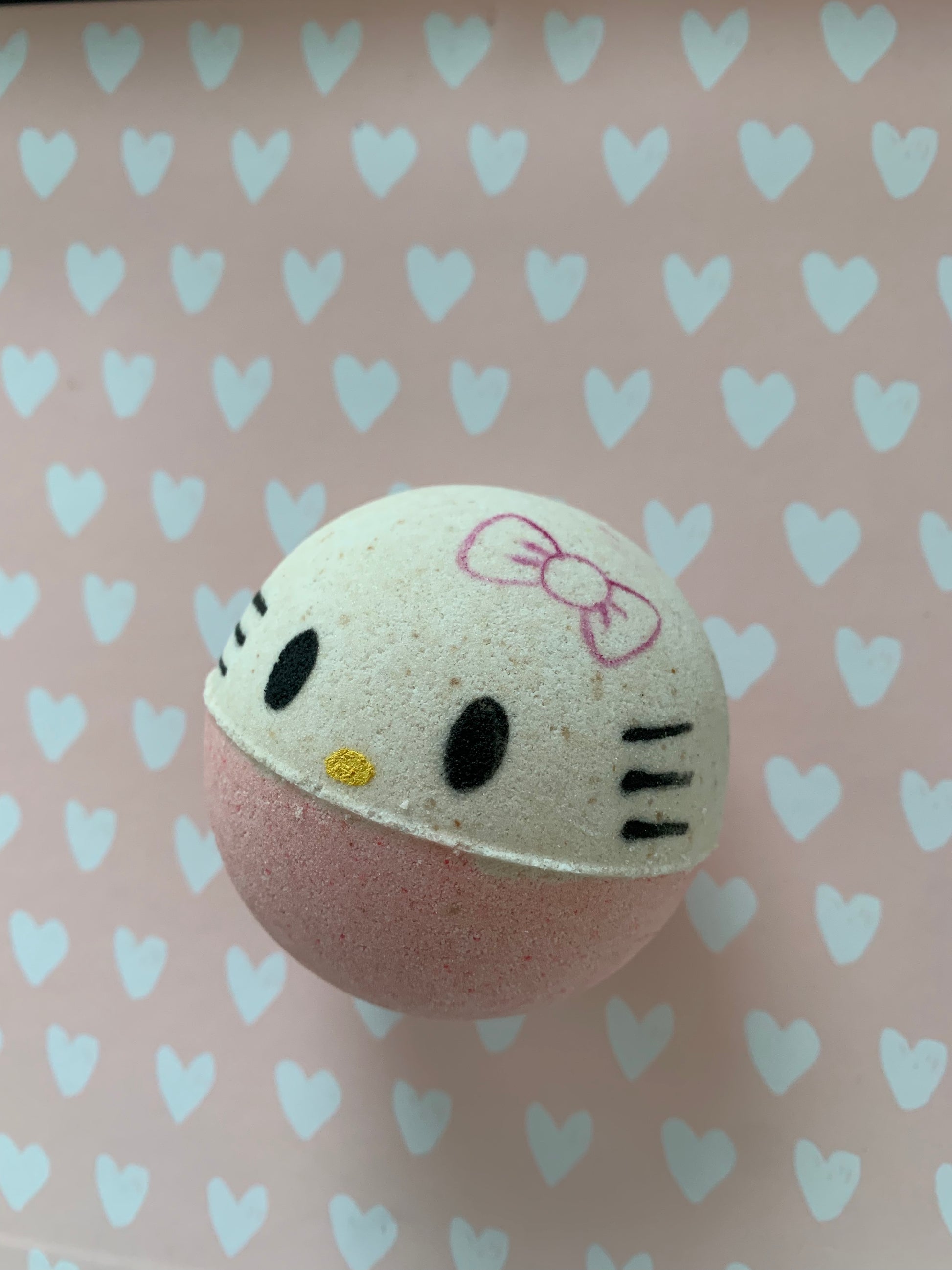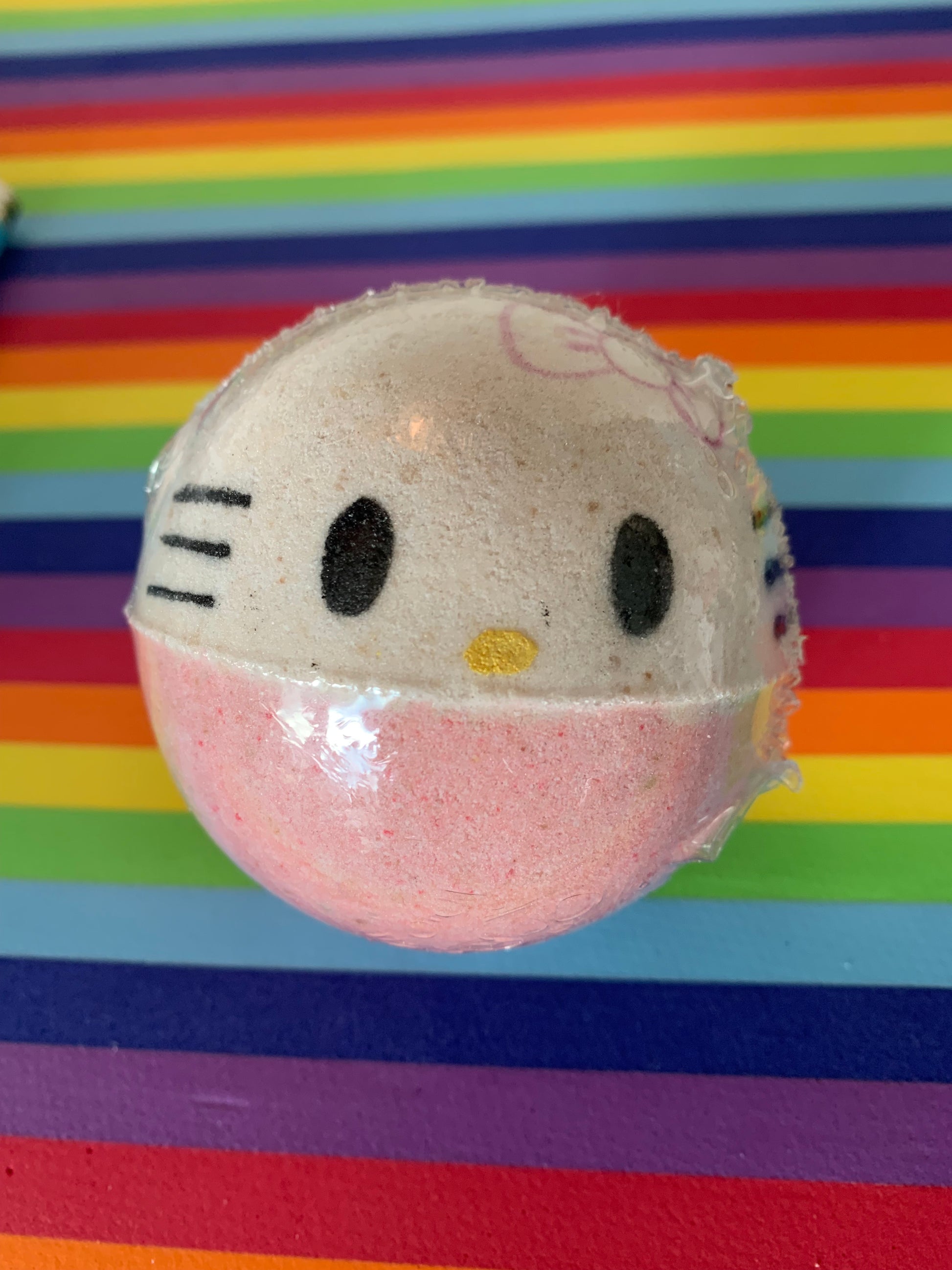 Adorable Happy Kitty Bath Bomb. Large size 6.5oz with a charm necklace inside either silver or gold style with white gemstone. Choose your own scent!